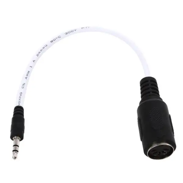 The 1010 Music MIDI Adapter has a male 3.5 mm TRS minijack at one end, and a female 5 pin DIN MIDI connector on the other, and is 22 cm/8.5″ long.