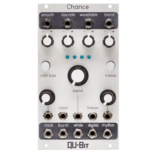 Qu-Bit Electronix Chance is a unique modulation source that uses chance operations to create musical voltages. Inspired by John Cage’s use of the Chinese divination text, I Ching, Chance generates random voltages in response to a digitally generated coin toss.